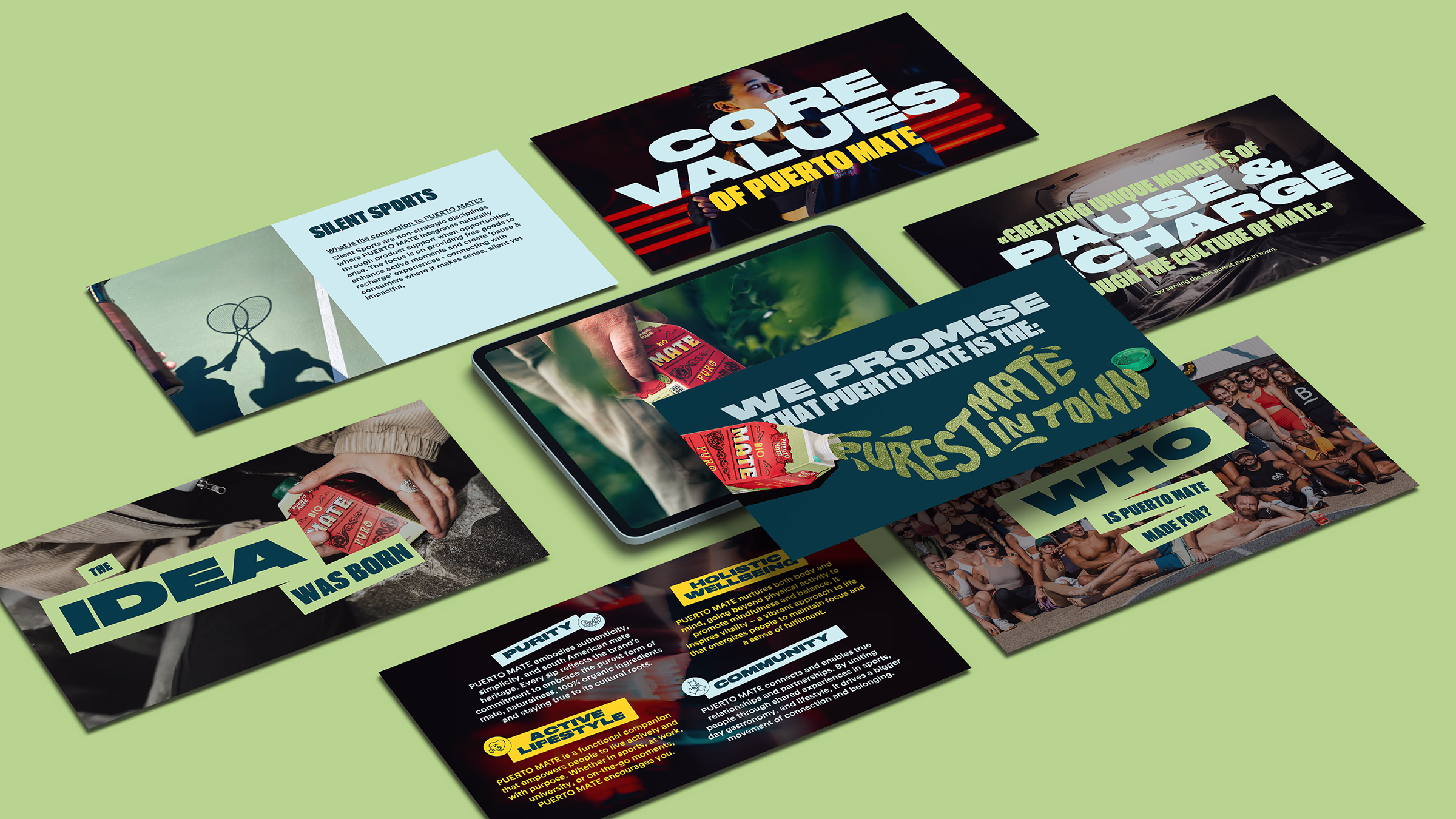 Mit Story, Design und einem neuen Claim haben wir Puerto Mate in einer Präsentation greifbar gemacht – und gezeigt, wie aus einer bewussten Pause ein Erlebnis wird.
